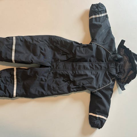 Polarn O. Pyret PO.P Weatherpro barneoverall i størrelse 116, unisex. Laget med Gore-Tex materiale som gir vanntett beskyttelse med en vannsøyle på over 12 000 mm, fullt tapede sømmer, vindtett og pustende egenskaper (over 5000 g/m²/24t). Overallen har vannavvisende overflate og isolerende vattering på 97%, med resirkulert fôr og refleksdetaljer for økt synlighet.