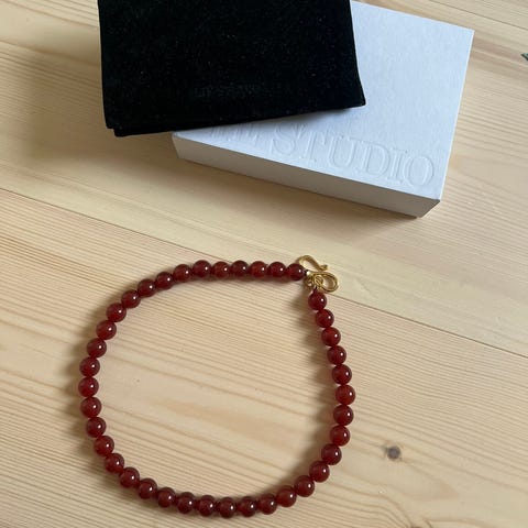 laget av blankpolerte, røde karneol-stener