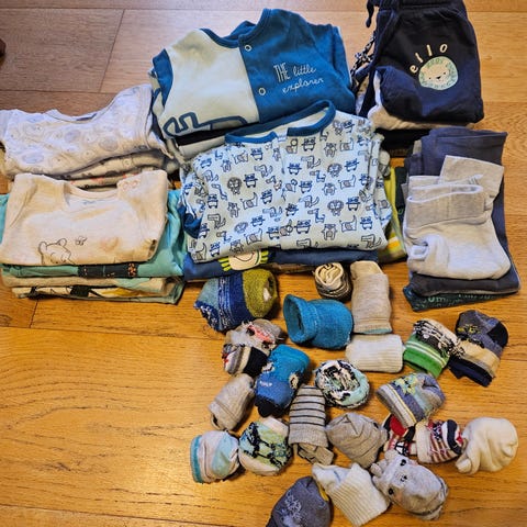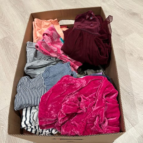 Pakke med diverse klær til jente. Alt er pent brukt, noe nesten ikke brukt i det hele tatt. Pakken består av to singleter KappAhl, ullgenser Zara, to teskjorter hm, kosebukse only kids, kosebukse rosa KappAhl, to yogaskjørt, to bluser KappAhl/lindex, hettegenser lager 157, ullgenser Lindex, omslagsgenser Gina Young, blondegenser hm, kjole KappAhl. Se bilder for info.