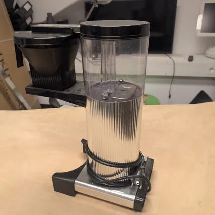 Moccamaster kaffetrakter med termokanne i rustfritt stål og plast. Kaffetrakteren har en kapasitet på opptil 1,25 liter og er utstyrt med vannmåler på beholderen. Passer til hjemmebruk og mindre kontorer.