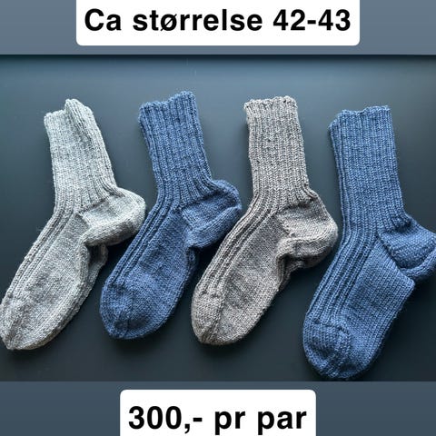 Håndstrikket ullsokker. Fra 16 cm lange til str 44/45, 39/40. strikker etter ønske og farge. Pris fra 60 kr til 320. Hentes Skien el.Sendes mot porto. Vipps.