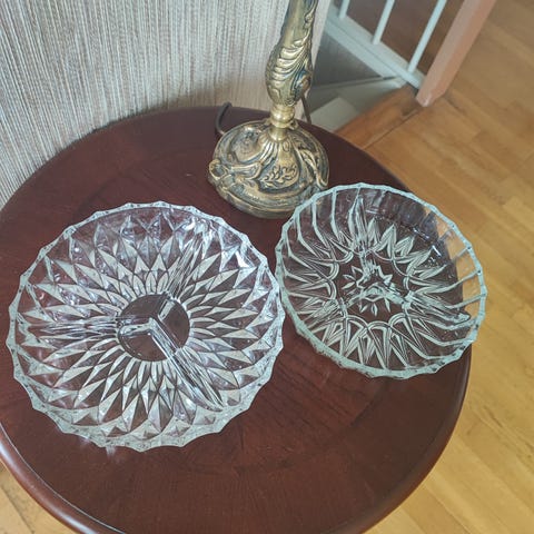Glassfat, to etasjer. 28 cm høyt.