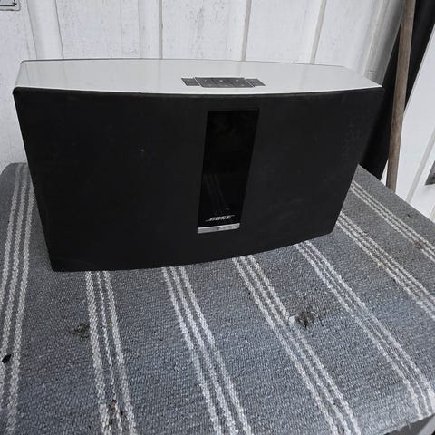 Bose høyttaler med fjernkontroll og strømadapter