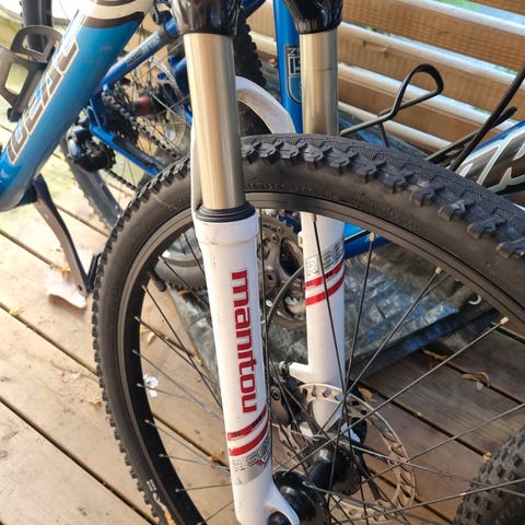 Fin og dyr demper som ikke er mye brukt selges. Styrerør er 19,4 cm. Inner tubes er helt fine og pakninger også. Den trenger muligens litt luft.