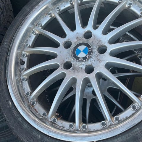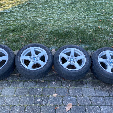 Stått på en 1 serie. 3 av dekk er ok det fjerde er søppel. Må hentes helt ok felg ingen kast