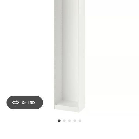 2 stykk hvite pax stammer med 3 hylleplater i hver. 201 cm høye, 50 cm brede og 35 cm dype. 700,- per stamme med hyller eller 1200 samlet for begge med hyller. Det er noen merker nederst etter list som har vært montert nederst, fjernet på det ene men ikke det andre, men fungerer like fint. Må hentes i Kristiansand.