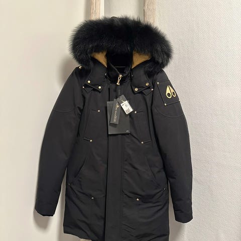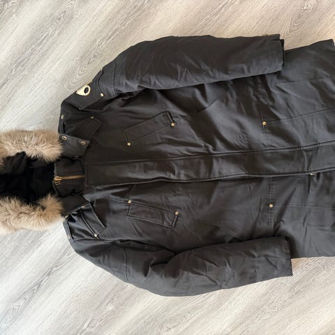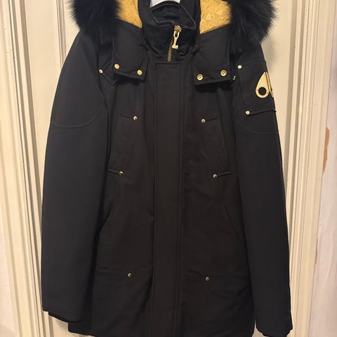 Selger Moose Knuckles Staglake Parka Gold Edition i marineblå, størrelse L. Jakken er lite brukt, nylig vasket og i svært god stand. Varm dunparkas med gulldetaljer og avtagbar pels – perfekt for norsk vinter.