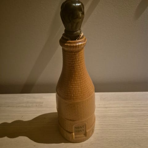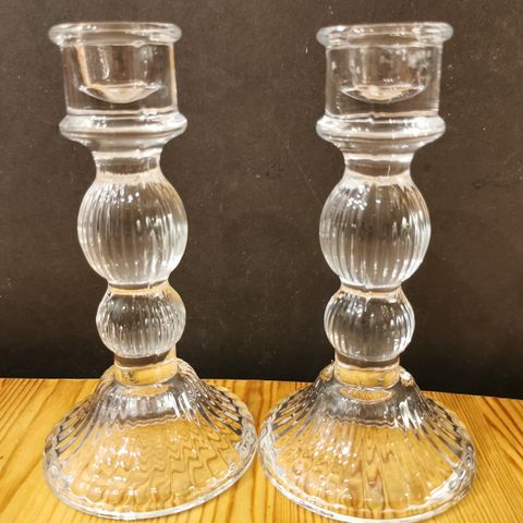 Glass karaffelsett bestående av 12 karaffler i ulike størrelser og mønstre.