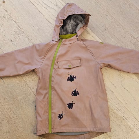 Kattnakken jakke i rosa farge, størrelse 116, beregnet for jente. Laget av polyester materiale. Jakken har hette, lett fòret og er dekorert med mønster på fronten.
