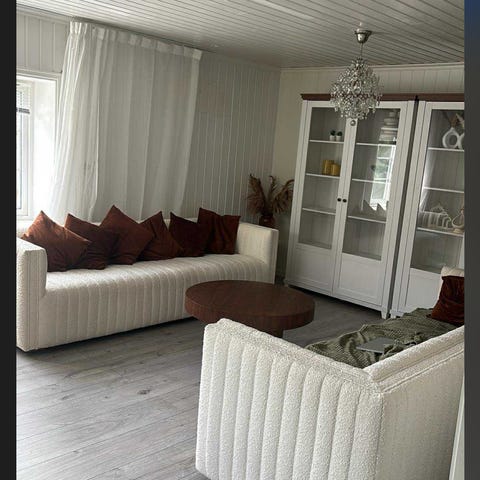 Vi selger vår pent brukte Skagen Howard 3-seter sofa m/2 lenestoler da den dessverre ikke får plass i vår nye stue.. Lite brukt og fin i stoffet