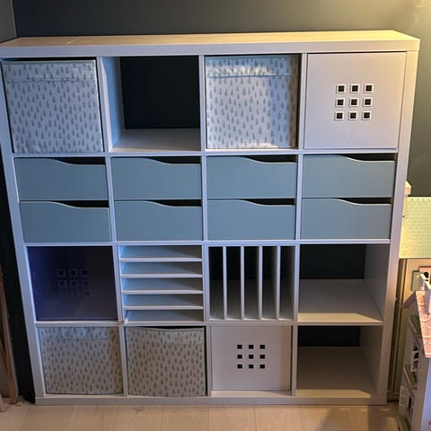 IKEA SKUBB hengende oppbevaringsløsning laget i stoff. Produktet har flere rom for organisering og oppbevaring av klær, leker eller annet smått. Passer til bruk i barnerom eller andre rom hvor ekstra oppbevaringsplass er ønskelig.