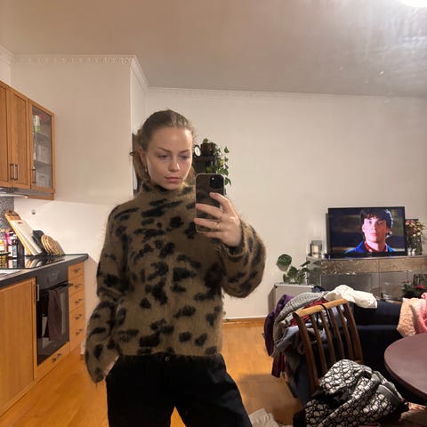Ganni Angi i flerfarget design. Størrelse S W27. Stor i størrelsen. Ikke mye brukt da den er for stor. Ny pris kr 2500.