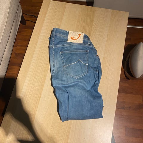 Stilren og eksklusiv bukse fra Jacob Cohën i en elegant blåfarge. Størrelse 33. Buksen har klassisk femlommersdesign og er laget i førsteklasses materiale som gir både komfort og en perfekt passform. Kjent for sin luksuriøse kvalitet, detaljer og håndverk – dette er en bukse som fungerer like godt til hverdags som til mer pyntede anledninger. Et tidløst plagg for deg som ønsker noe ekstra.