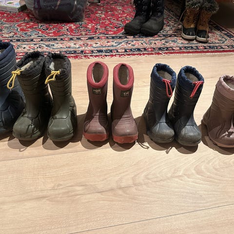 Gode og varme cherrox/vinterstøvler som har gått én sesong. Mye bruk igjen! Fôret inni er helt, også ved hælen. Fin, dus lillafarge som ikke kommer så godt frem på bildene.