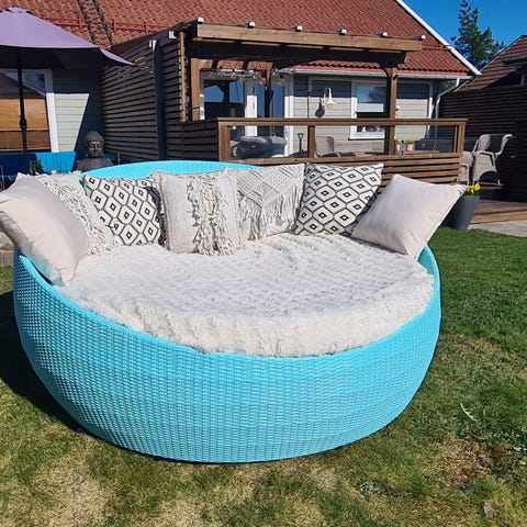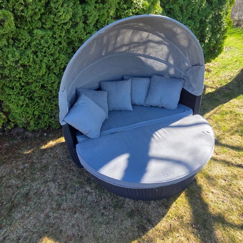 Rattan rund solseng med justerbar baldakin og puter
