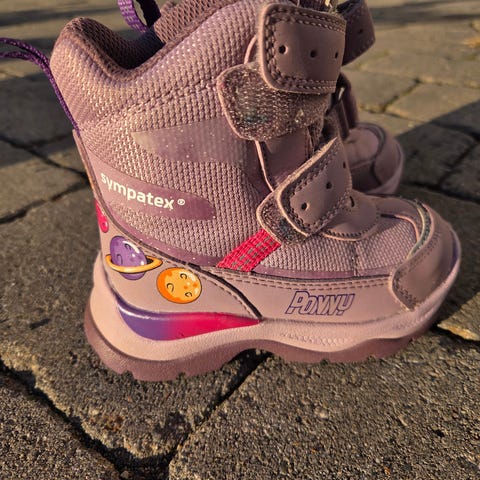 Selger et par Ponny vintersko i str 22. Brukt av ett barn i en sesong. Trenger en vask. Mye bruk igjen