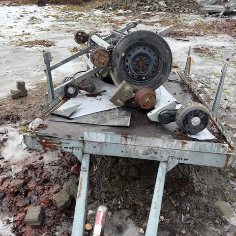 Tilhenger støttehjul med hjul, laget i metall. Brukt til støtte og manøvrering av tilhenger. Passer til ulike tilhengermodeller. Hjul for enklere bevegelse og stabilitet.