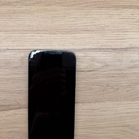 Telefonen er godt brukt, og har et knust kamera på baksiden som ses på siste bilde.