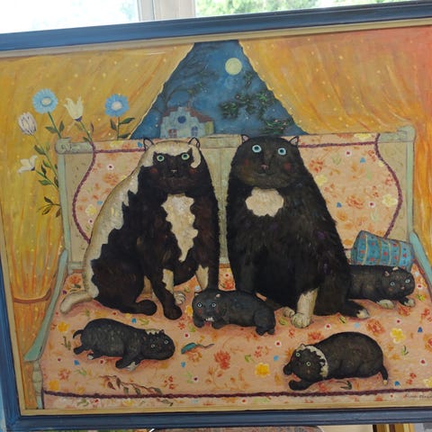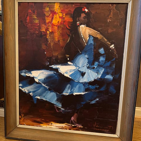 Bilde som viser to traner. Bildet er innrammet med en svart og gullfarget ramme. Litografiet har signatur og nummerering i bunnen. Passer til veggdekorasjon.