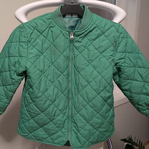 Arket barnejakke i størrelse 110, svart farge, designet for unisex bruk. Jakken har quiltet mønster og hette, samt glidelås foran. Materialet er lett og egnet for barn.