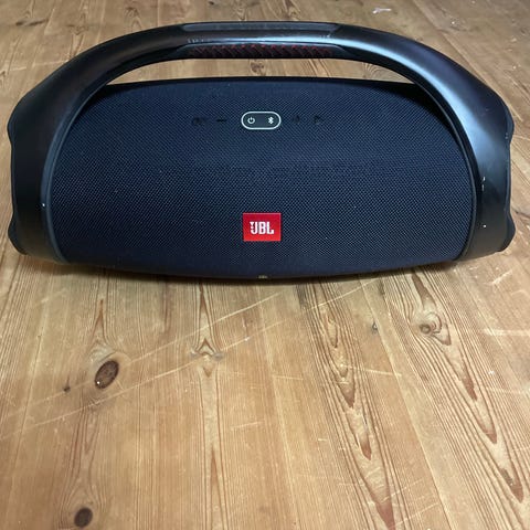 JBL Boombox 2 bærbar Bluetooth-høyttaler med kraftig lyd og innebygd batteri for trådløs bruk. Egnet for utendørs og innendørs lydavspilling.