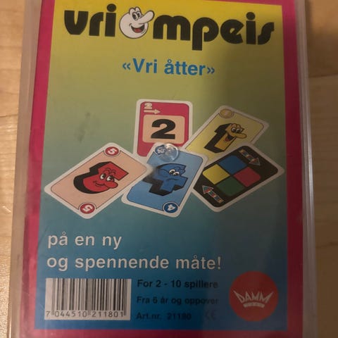 Vriompeis kortspill med fargerike kort og regler for hele familien. Egnet for alder 6 år og oppover. Spillet inkluderer ulike handlinger som å legge samme farge, hoppe over spillere og snu spillretningen.