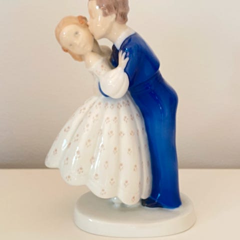 Engelske porselenshunder i par selges. Det ser ut som det står KP England på stempelet under