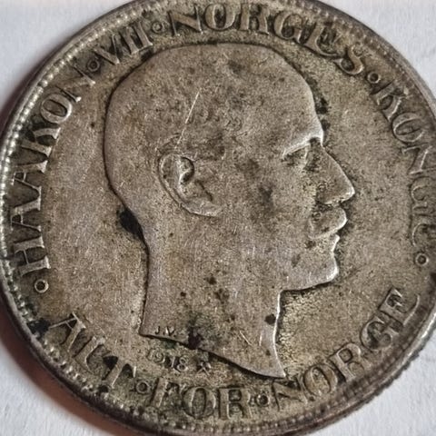 Norsk, 50 Øre 1918 , Sølvmynt, Se Bilder for kvalitet