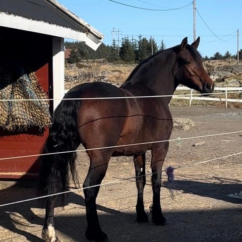 Little Miss Jolene selges hvis rett hjem dukker opp. Hun er en søt allround hest. Har vært brukt sparsommlig i sprang, western, mounted games og tur. Har vært på pay and jump opp til 80 cm, titter ikke på tittehinder. Tror hun hadde vært veldig fin i feltritt. God motor. Står i flokk med andre hopper, på fri tilgang med høy. Middels på rang.