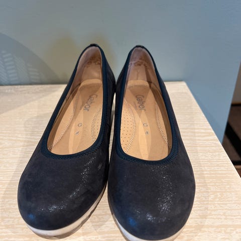 Pent brukte hæler i størrelse 41 (passer best str 40) selges. Fargen er mørk blå og i «semsket skinn» kvalitet.
