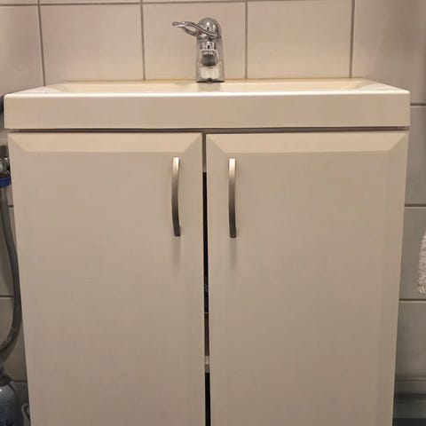 Baderomsmøbel sett med servant, speil og skuffer i hvit