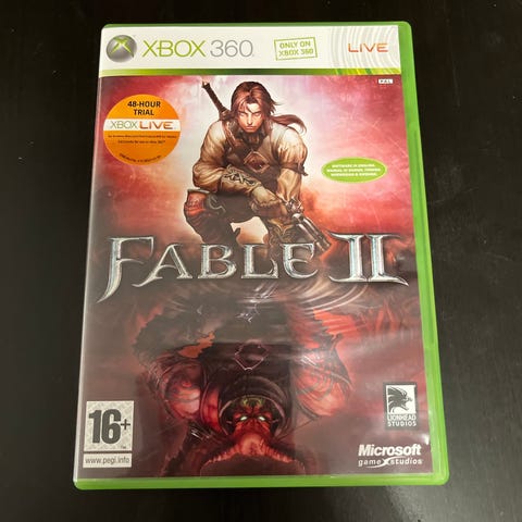 Microsoft Fable II Xbox 360-spill. Inkluderer spillplate og originalt spillomslag. Spill i action-rollespill-sjangeren for Xbox 360.