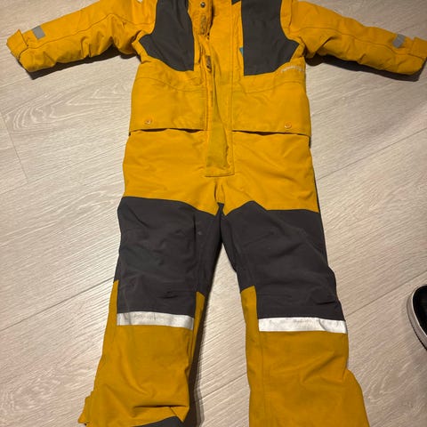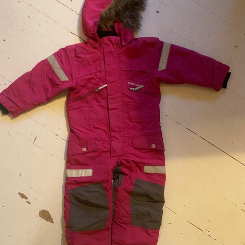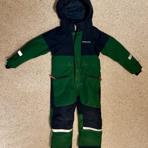 Didriksons Barne Dress i størrelse 104, farge blå, laget av polyamid. Dressen er designet for barn og er unisex. Den har detaljer som avtagbar hette med pels, justerbare ermer og ben, samt reflekser for økt synlighet.