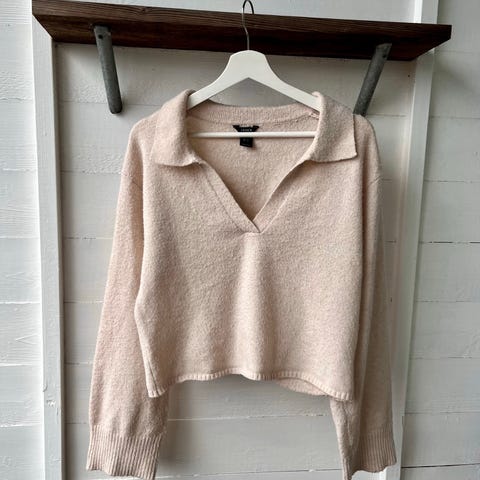# ballong ermer croppet genser kroppet genser crop sweater knit strikk strikkegenser strikkecardigan kardigan kort genser kremhvit hvit genser knapper strikket genser cropped cardigan
