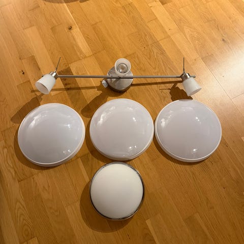 Pen taklampe i glass. En liten ubetydelig bulk øverst på takkoppen. 30 cm diameter, ledning ca 50 cm