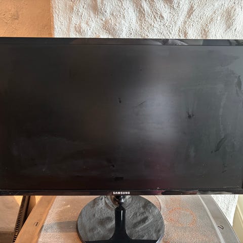 Samsung 24-tommers skjerm med HDMI-tilkobling. Skjermen har en svart ramme og et justerbart stativ. Egnet for bruk i hjemmet eller på kontoret.