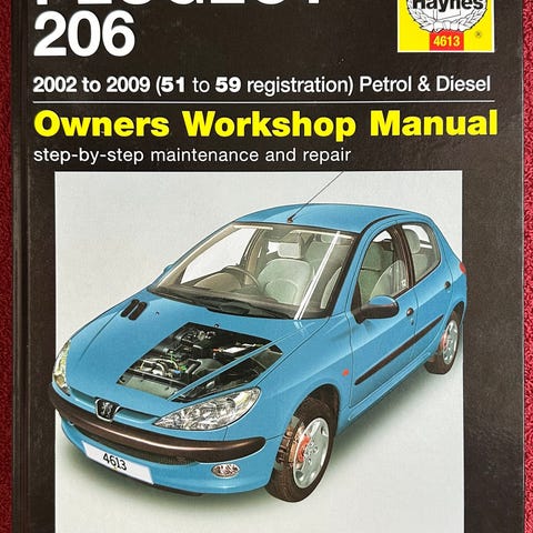 Haynes Peugeot 207 Verkstedsmanual for modeller fra 2006 til juli 2009, dekker både bensin- og dieselmotorer. Manualen gir trinnvise instruksjoner for vedlikehold og reparasjon av bilen.