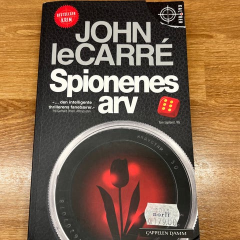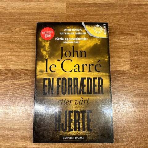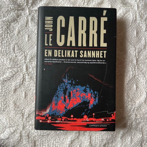 Selger En delikat sannhet av John le Carré (pocket). Dette er en skarp og spennende thriller, med den klassiske le Carré-stilen: intriger, politikk og etterretning, smart skrevet og vanskelig å legge fra seg.