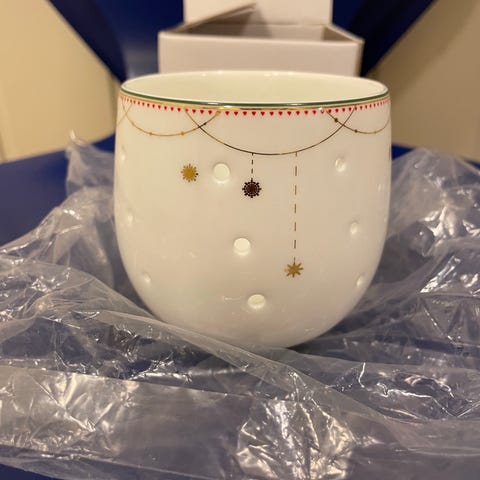 dekorert med en mer skinnende, metallisk dekor, enn hverdagsserviset. Den mellsomstore