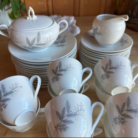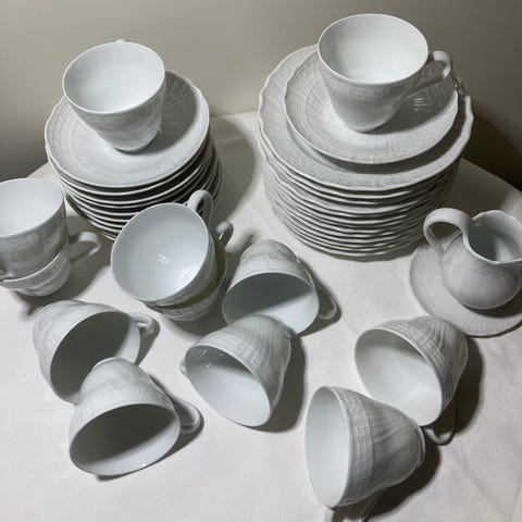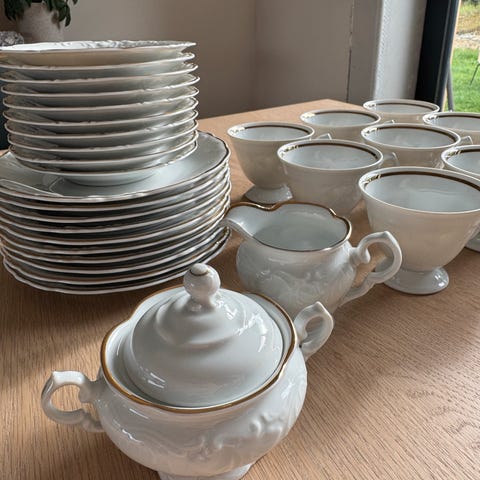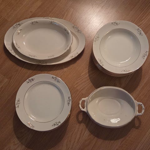 + 4 små tallerkner og 1 servise med lokk