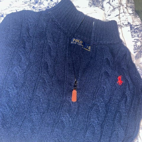 Ralph Lauren Polo ullgenser i blå farge, størrelse M. Genseren er laget av ullmateriale og har et klassisk design med rund hals.