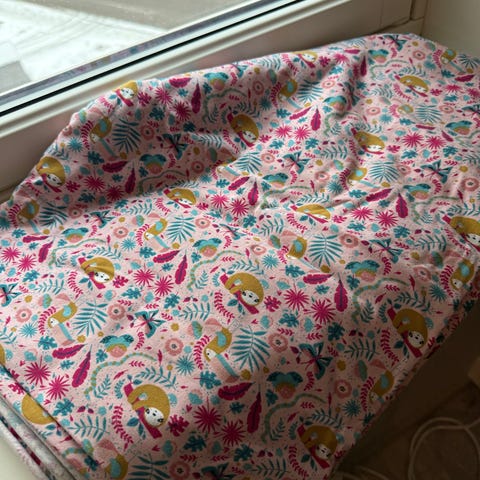 Fast bomull. 150 cm bredde. Litt over 200 cm lengde. Helt og pent. Røykfritt hjem.