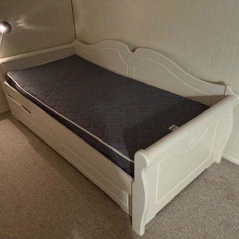 God gamel sovesofa , madrassen er fast og god å ligge i.