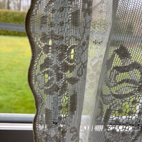 Pent som pynt på et skatoll, bord, kommode eller benk. Det er rutemønster på ene siden og «glatt» på andre siden (tosidig bruk)