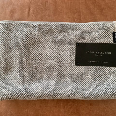Enkel, grå baderomsmatte i frotté fra IKEA. 50x80 cm. 100% bomull.