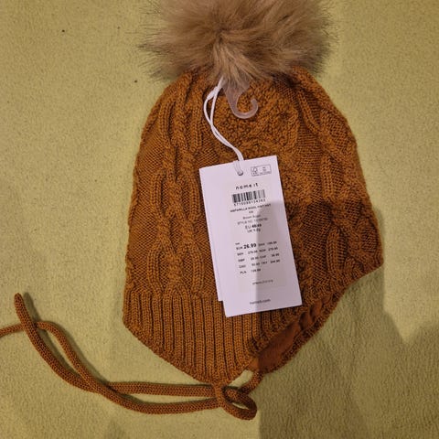 Hodeomkrets ca 53 cm. Høyde ca 21 cm. 100% ull. Selges som den er.