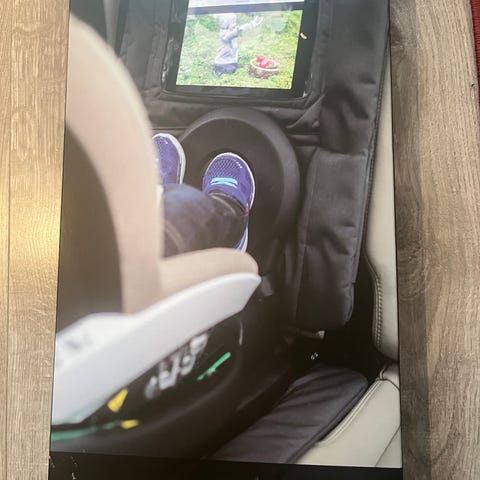 En setebeskytter til bilsetet med gjennomsiktig lomme til nettbrett som gjør bilreisene mer utholdelige! Setebeskytteren kan brukes både på baksiden av framsetet og på baksetes rygg til bakovervendte stoler. Beskytteren har gjennomgått kollisjonstest og er kompatibel med bilens ISOFIX-fester.
