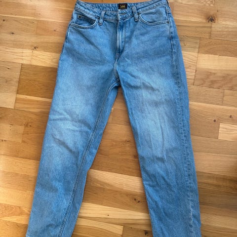 Lee Mom Straight jeans i blå denim, størrelse W26/L33. Kjempekule jeans. Dessverre for små til meg. Pent brukt.