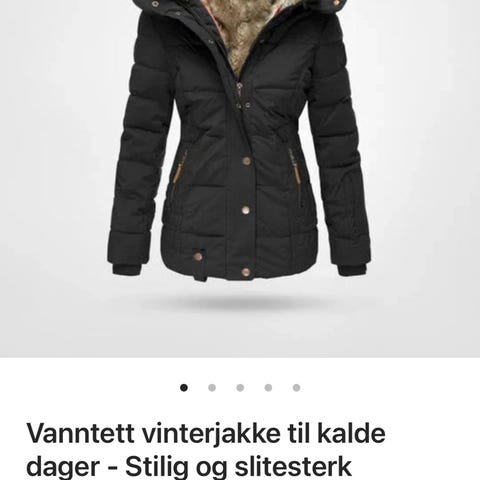 vinterjakke i størrelse M for kvinner. Jakken er hvit og laget av polyester.