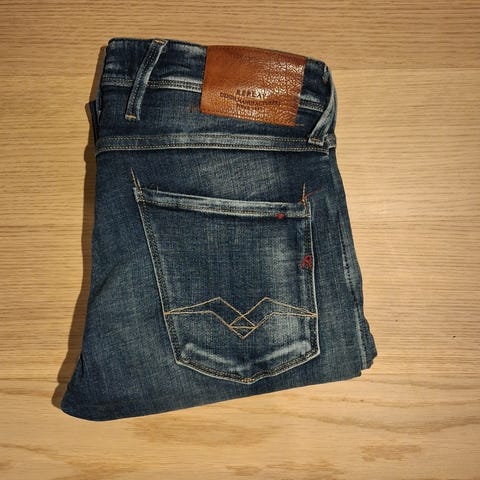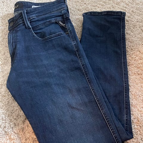 Pent brukte mørkeblå jeans fra Replay str. 29/30.